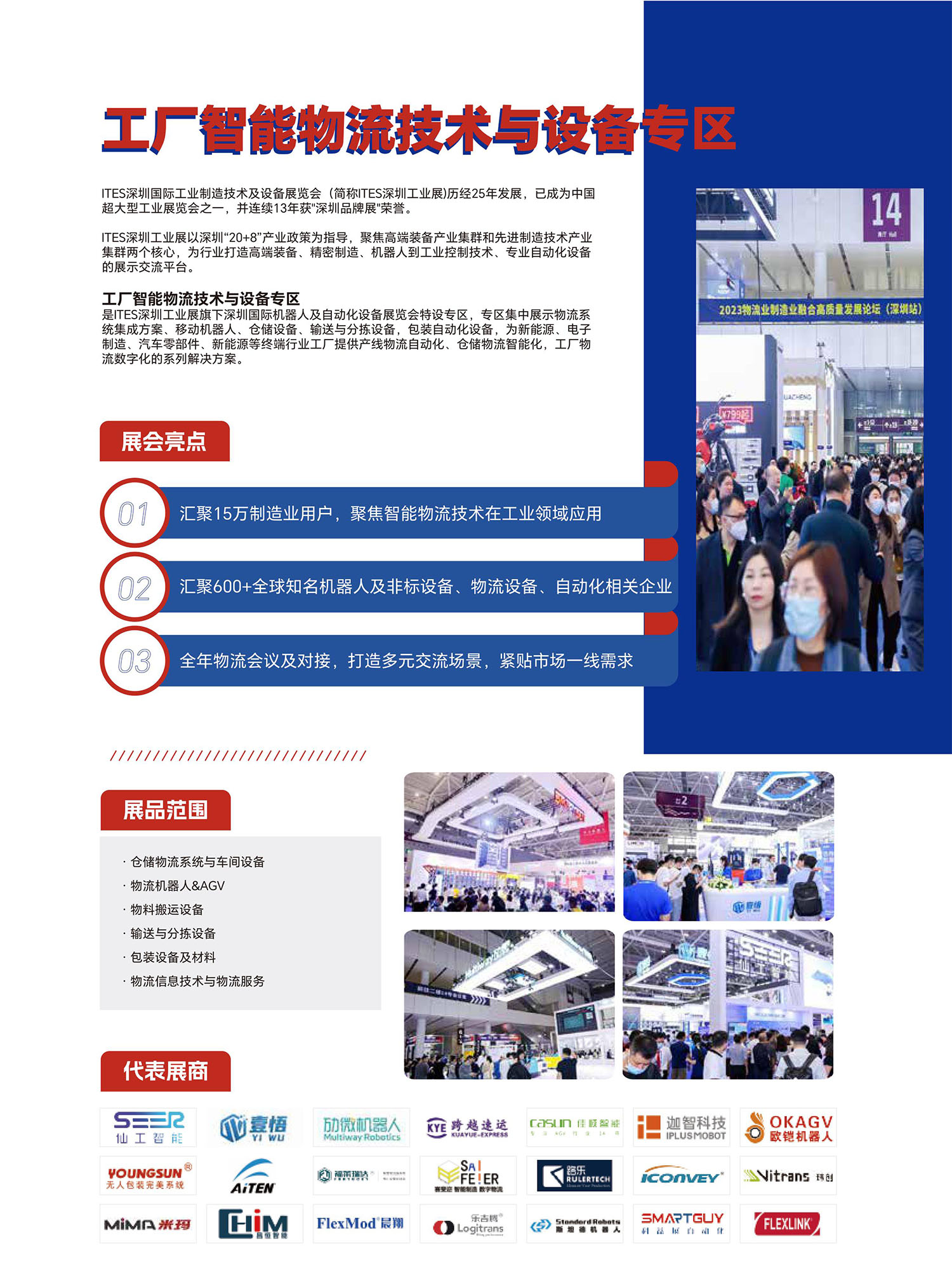 是ITES深圳工業(yè)展旗下深圳國(guó)際機(jī)器人及自動(dòng)化設(shè)備展覽會(huì)特設(shè)專區(qū),專區(qū)集中展示物流系統(tǒng)集成方案、移動(dòng)機(jī)器人、倉(cāng)儲(chǔ)設(shè)備、輸送與分揀設(shè)備,包裝自動(dòng)化設(shè)備,為新能源、電子制造、汽車零部件、新能源等終端行業(yè)工廠提供產(chǎn)線物流自動(dòng)化、倉(cāng)儲(chǔ)物流智能化,工廠物流數(shù)字化的系列解決方案。