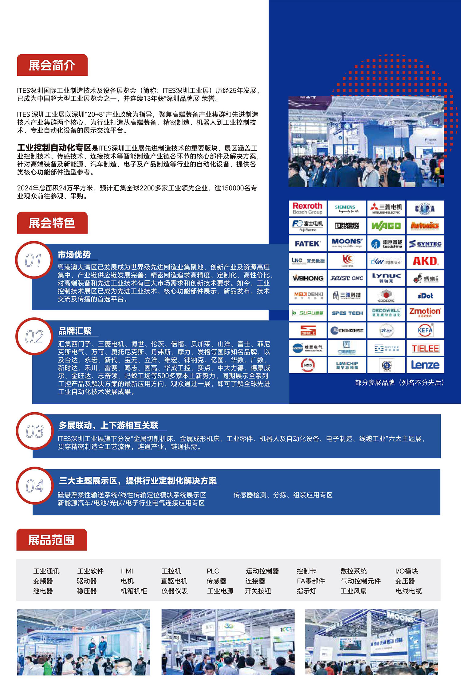 是ITES深圳工業(yè)展先進制造技術(shù)的重要版塊,展區(qū)涵蓋工業(yè)控制技術(shù)、傳感技術(shù)、連接技術(shù)等智能制造產(chǎn)業(yè)鏈各環(huán)節(jié)的核心部件及解決方案針對高端裝備及新能源、汽車制造、電子及產(chǎn)品制造等行業(yè)的自動化設(shè)備,提供各類核心功能部件選型參考。